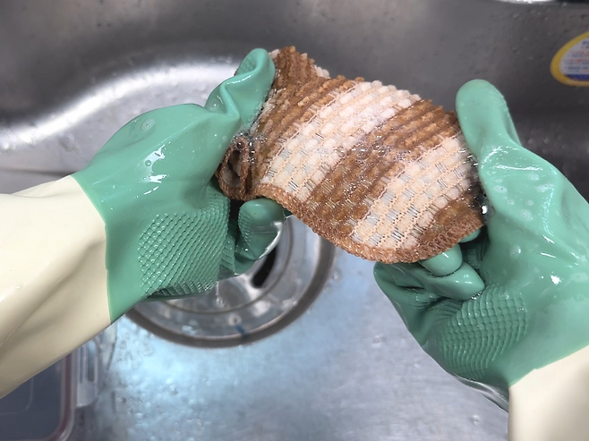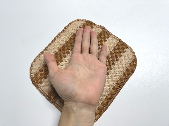 수세미를 펼쳐 보았을 때 여성 손바닥 사이즈 정도로 작지도 크지도 않아서 사용하기 딱 좋겠더라고요.