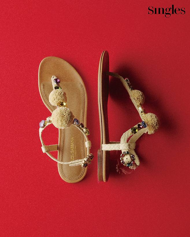 컬러 스톤 장식을 더한 라피아 소재 샌들은 176만원 Dolce&Gabbana.