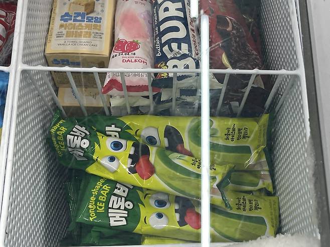 냉동 상태에서는 딱딱한 아이스크림 느낌인데 조금 녹으면 젤리 같은 탱글탱글한 식감으로 변해요.