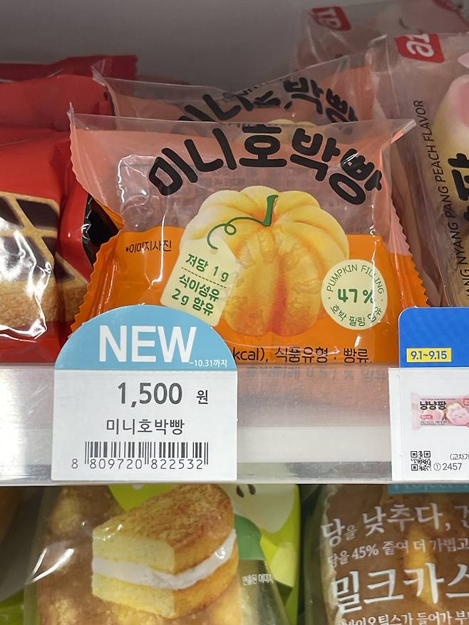 작고 귀여운 사이즈의 빵 속에 달콤한 호박 필링이 들어간 간식빵으로 부드러운 식감과 은은한 단맛으로 티타임이나 디저트용으로 적합해요.