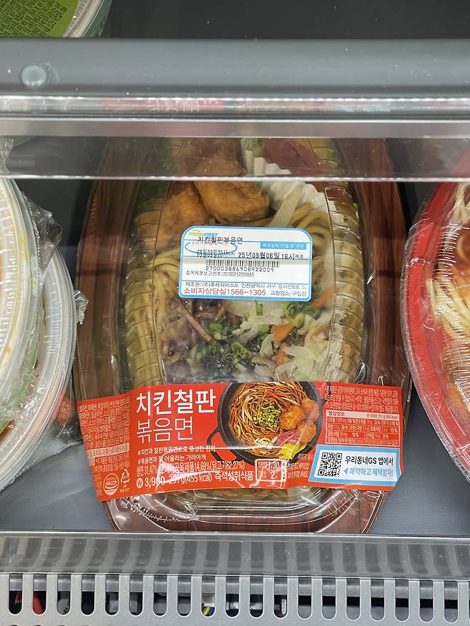 매콤한 불맛 소스에 철판에서 볶아낸 듯한 풍미를 살린 치킨 철판 볶음면이에요.