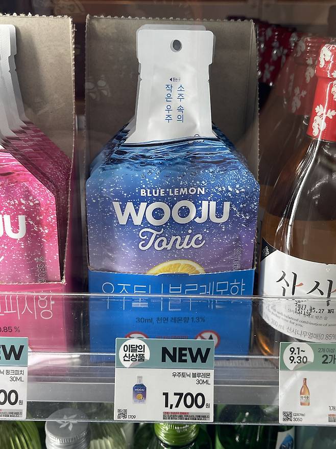 상큼한 블루레몬향이 가미된 탄산수로, 청량감이 강한 우주토닉 음료에요.