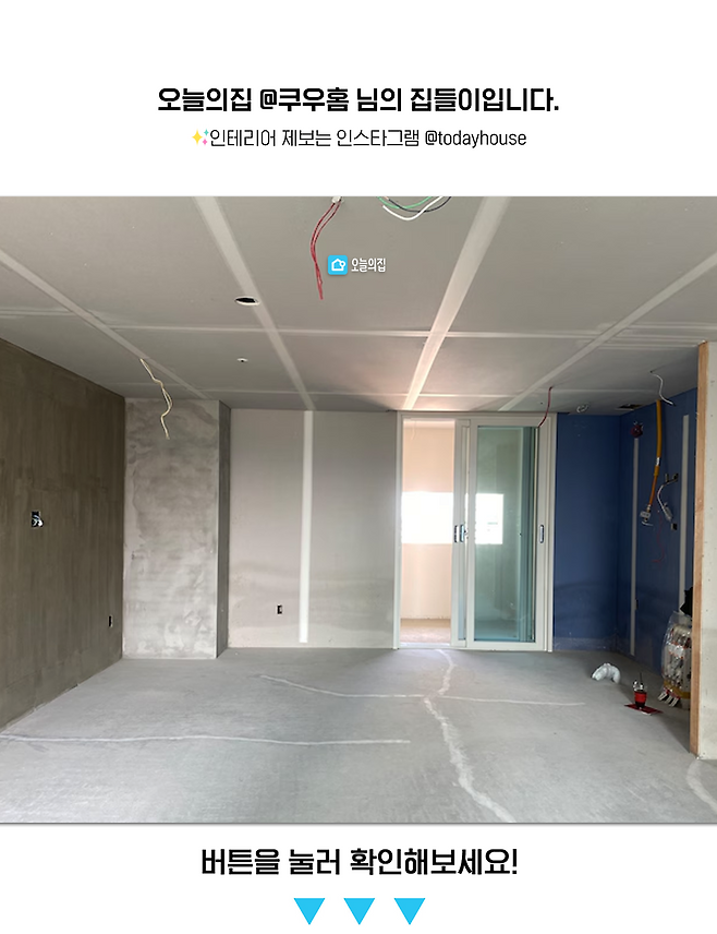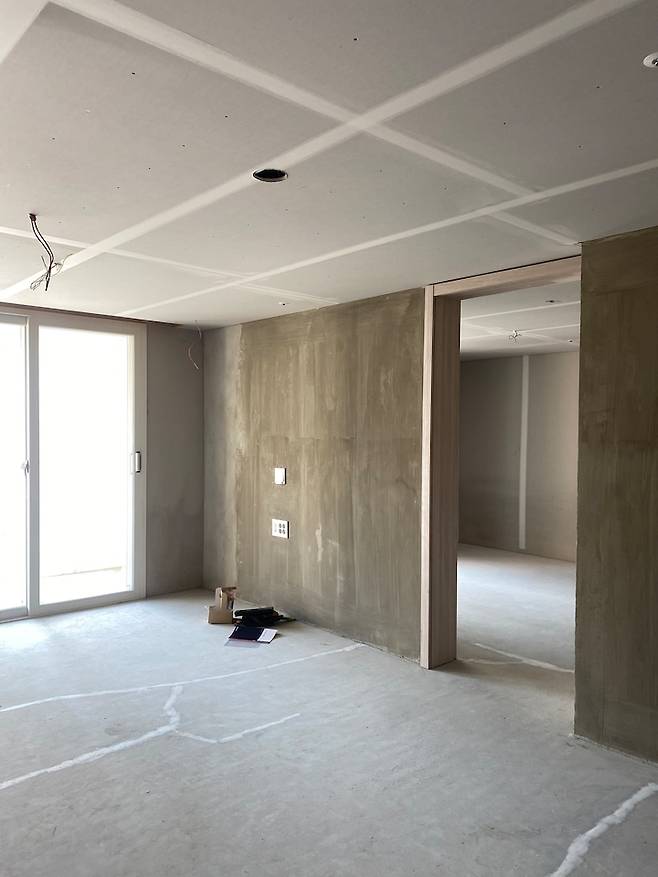 그렇기 때문에 저희 집은 위 사진처럼 도배나 바닥, 화장실 타일 등 정말 어떠한 인테리어도 되어 있지 않은 '골조'만 있는 상태인 거죠.