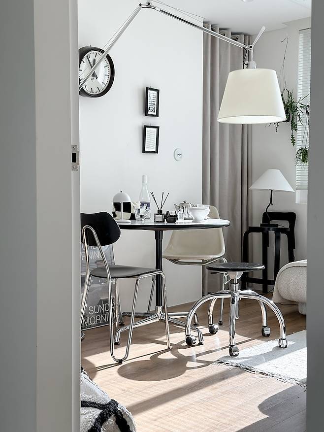 공간은 제게 '도화지'이고 가구 배치를 바꾸고 새로운 스타일링을 하면서 계속 새로운 그림을 그리는 거죠. 다양한 스타일의 소가구들을 주로 가지고 있기 때문에 이리저리 새로운 조합을 찾아내는 재미가 있고, 이렇게 자주 바꿔주면 집에 묵은 먼지가 생기지 않는다는 점도 좋아요.