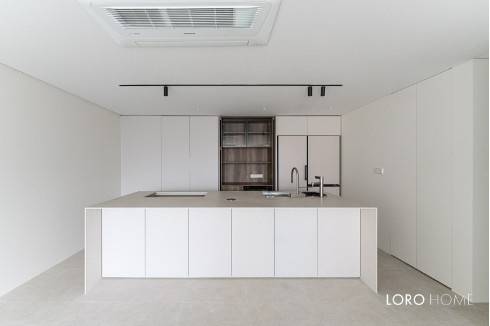 처음에는 이렇게 주방을 반을 나눠 공간의 용도를 나누는 것에 대해 걱정이 많았고, 굳이 나눈다면 이 공간은 키큰장으로 채워 넉넉한 수납을 만든다면 추후 매도 시 사람들이 더 좋아하지 않을까 싶었고, 그것도 아니라면 이렇게 보조주방처럼 만들 때 거실의 디자인과 이어지는 게 또 매도 시 더 낫지 않을까 생각했어요.