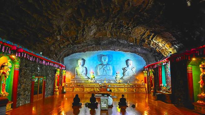 이어서 만나는 제2법당 무량수전(약 90평, 297㎡) 또한 동굴 내부에 조성되어 있으며, 두 공간 모두 자연 지형을 그대로 활용해 완성되었다는 점에서 그 특별함이 배가된다.