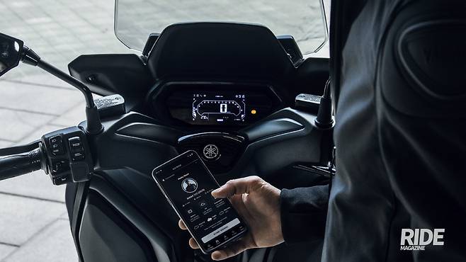 업그레이드된 엔진과 함께 눈에 띄는 부분은 편의장비의 강화다. 대표적인 것이 계기판으로, 기존에는 아날로그 방식의 속도계 등에 LCD창을 조합해 추가적인 정보를 전달하는 식이었지만, 첨단 장비들의 도입이 늘어나는 분위기에 맞춰 신형 엑스맥스에도 TFT 스크린을 도입해 다양한 정보들을 전달한다. 특히 ‘Y-커넥트’ 기능을 사용할 수 있는 CCU를 탑재하고 있어 스마트폰을 연결해 전화 수신이나 음악 재생 등이 가능한 건 물론이고, 차량의 다양한 정보들을 스마트폰을 통해 확인할 수 있다. 이 부분은 먼저 적용된 엔맥스를 보면 잘 알 수 있는데, 계기판에서 확인하기 어려운 엔진 회전계나 스로틀 개도각 등의 정보와 함께 얼마나 효율적인 주행을 하는지의 정보를 시각적인 그래프로도 확인할 수 있고, 실제 연비가 어느정도인지 데이터로 남기 때문에 매일매일의 기록을 확인해 운전 습관을 개선할 수 있다. 이 밖에도 배터리 상태나 엔진오일 교환주기, 차량 주차위치 안내, 누적 주행거리 등 다양한 정보를 표시한다. 내비게이션 기능도 갖추고 있지만 한국 법규상의 문제로 인해 국내에서는 사용이 불가능하다.