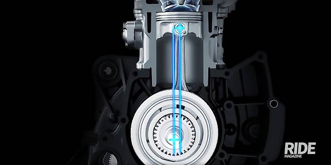 아무리 강력한 성능을 내더라도 중간에 다 손실되어 버린다면 무용지물일 뿐이다. 동력이 최대한 온전히 구동축으로 전달되기 위한 방안도 블루코어 엔진의 특징 중 하나다. 먼저 무단 변속기가 부드럽게 움직이도록 해 동력 손실을 최소화했으며, 다른 매뉴얼 모터사이클에 비해 낮은 회전수를 사용하는 만큼 이에 맞는 기어비를 채택했다. 또한 실린더의 축과 크랭크 축의 정렬이 살짝 어긋나도록 설계했는데, 이를 통해 피스톤과 커넥팅 로드가 직접 수직 운동을 하게 되며 동력 손실을 최소화할 수 있다. 그리고 로커암에 롤러를 추가함으로써 흡배기 밸브를 여닫을 때 마찰을 줄여 원활한 흡배기를 통해 효율성을 향상, 최대한의 성능을 내도록 했다.