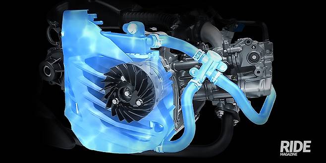 우수한 성능을 내기 위해선 우수한 냉각 성능도 필수다. 먼저 엔진 실린더에 DiASil 코팅을 통해 냉각 효율을 향상시켰고, 측면 냉각팬의 효율을 높이기 위해 냉각 라인에 서모스탯 옆으로 바이패스 라인을 더함으로써 빠른 예열이 가능해 연소 효율을 높인다.