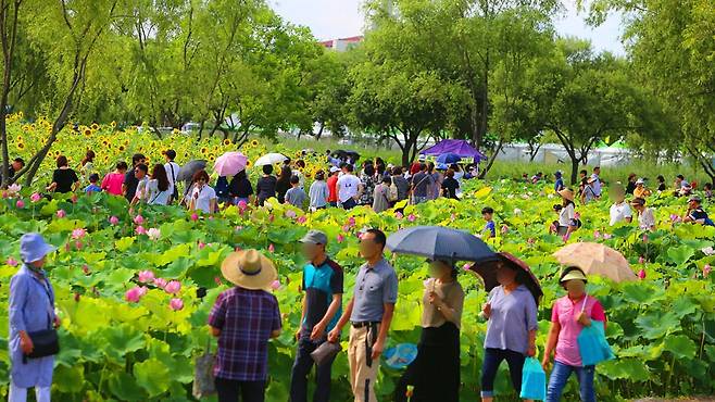 축제 기간에는 바람개비 길, 연꽃 조형물, 야간 조명 등이 연못 주변을 수놓아 낮과 밤, 어느 시간에 방문해도 인생샷을 남기기 좋은 포토존이 가득하다.