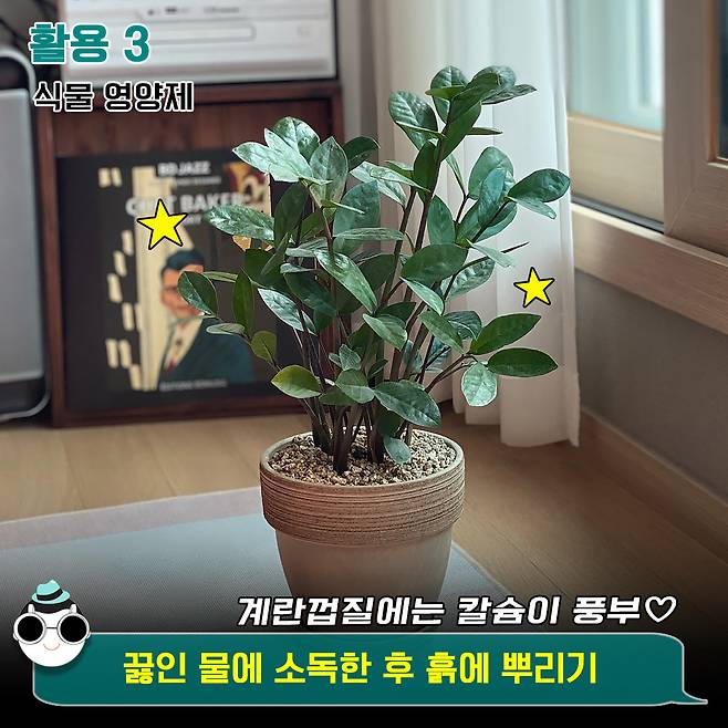 마지막으로는 식물 영양제로 쓰일 예정. 계란껍질에는 식물 성장에 넘나리 중요한 칼슘이 풍부하거든요.