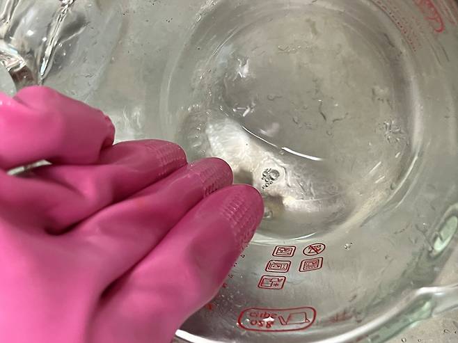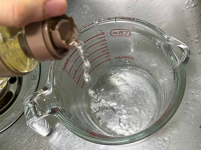이때 식초를 소량 그릇에 붓고 그냥 두는 것이 아니라, 식초를 그릇 내부에 꼼꼼히 발라 주세요. 그래야 전체적으로 식초 살균 효과가 있습니다. 그다음 15분 이상 기다리세요.