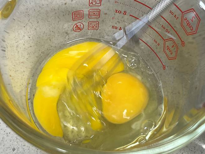 계란을 풀었던 그릇입니다. 이 그릇 그냥 두면 계속 비린내가 심해지더라고요. 계란 닿았던 그릇은 바로 1차 세척을 해야 합니다.