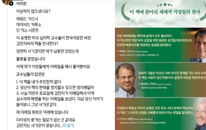 앞서 김씨는 저서 '현명한 부모는 적당한 거리를 둔다'에서 자신을 "하버드대학교에서 심리학과 뇌과학을 공부하고 UCLA에서 임상심리학 박사를 취득한 미국 공인 임상심리학자"로 소개했습니다.