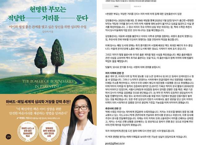 출판사 측은 "온라인 기록상 저자의 한국 활동이 2018년부터 이어지고 있었으며, 서울시교육청과 대검찰청 등에서 강의를 진행한 것을 확인하고 해당 기관에서 강사 이력을 검증했을 것으로 판단했다"고 밝혔습니다.
