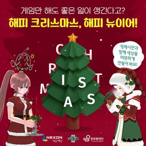 이번 이벤트는 마비노기 이용자가 게임 내 이벤트에 참여하는 것만으로 푸르메재단 넥슨어린이재활병원에 기부가 되는 것으로, 내년 1월 9일까지 주차별 미션인 던바튼 광장에서 크리스마스 트리 만들기와 눈사람 만들기 등을 완료하면 된다.