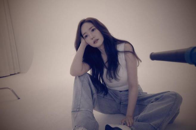 사진 속 박민영은 청바지에 화이트 크롭 탱크톱을 입고 사진 촬영을 하고있는 모습이다. 꾸안꾸(꾸민 듯 안 꾸민 듯) 스타일로 대표되는 흰티에 청바지 패션을 소화하며 완벽한 몸매를 뽐내고 있다.