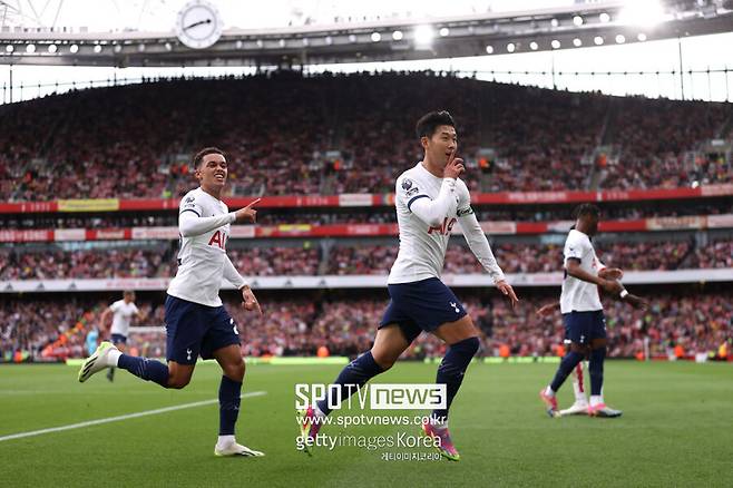 이후 전반 42분 손흥민의 골이 터졌다. 매디슨이 박스 안까지 끝까지 치고 들어가 낮게 깔아준 공을 손흥민이 그대로 득점을 올렸다. 골을 넣은 손흥민은 검지를 입에 갖다 댔다. 아스날 홈 팬들에게 조용히 하라는 뜻이 담겨 있었다.