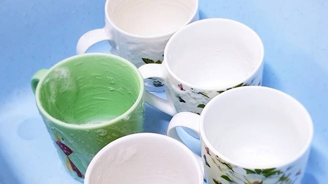 먼저 모든 컵을 세제로 가볍게 한번 씻어 주세요.