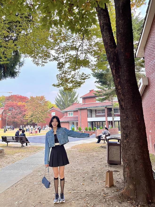 크롭 기장의 자켓에 미니스커트까지 같이 코디하니까
