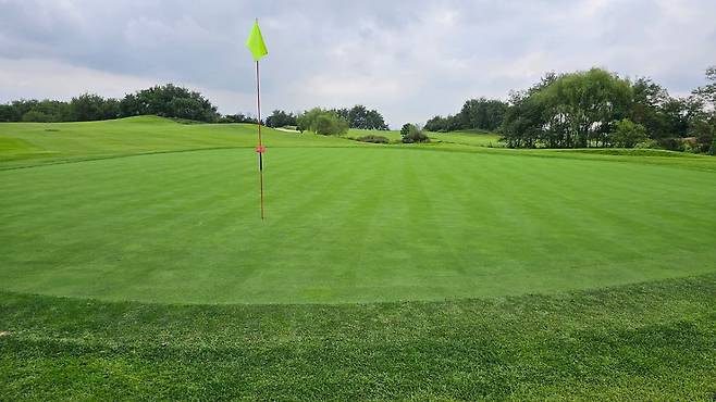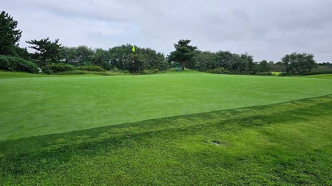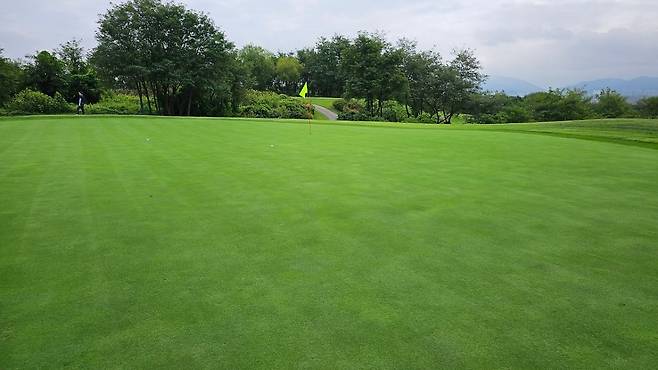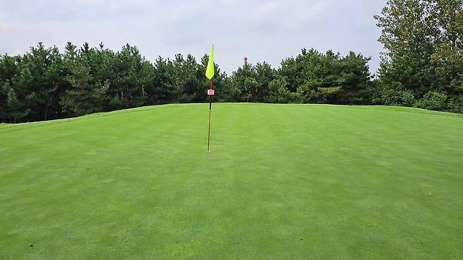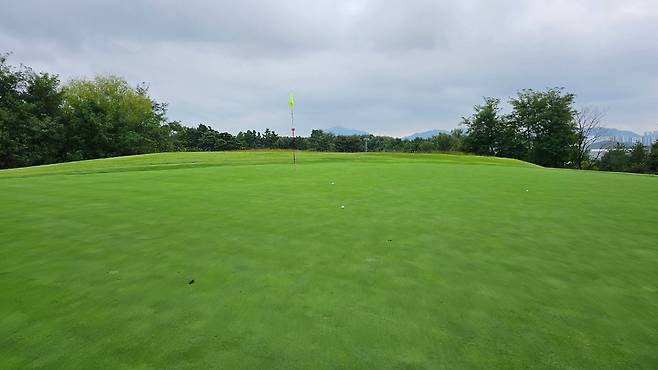 그린 잔디 상태가 좋아보여 기대했는데 그린 속도는 느렸습니다.