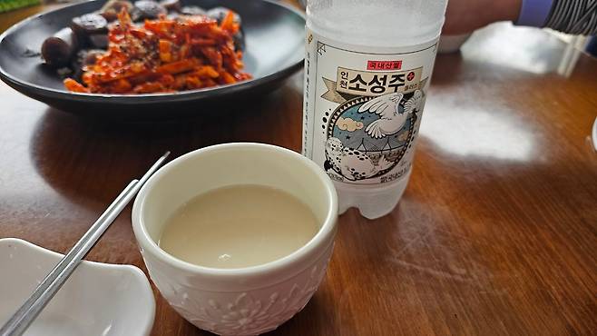 그늘집에서는 찰순대 오징어초무침과 인천 소성주 막걸리를 즐겼습니다.