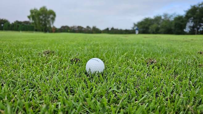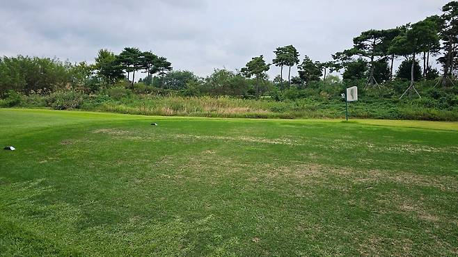 러프 길이가 아주 길지는 않아 샷 하는 데 큰 어려움은 없었습니다만 롱 아이언이나, 우드류는 감기거나 탑 볼 등이 발생할 수 있는 환경입니다.