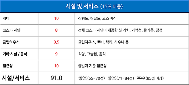 클럽하우스, 라커룸, 사우나 시설 : 8.5점