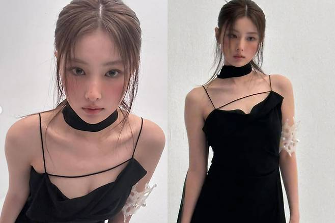쉬는 시간에 찍힌 듯 진한 메이크업에 블랙 드레스를 소화하고 있는 강혜원의 비주얼이 보는 이들의 감탄을 자아냈습니다.