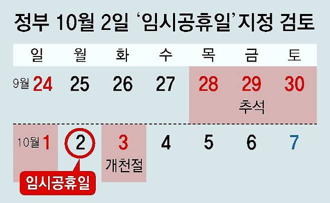 추석연휴∼개천절까지 ‘6일 연휴’ 검토