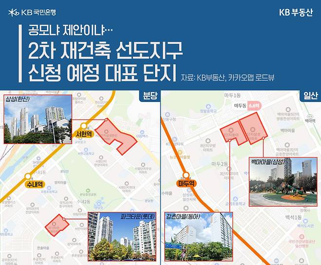 지난해 11월, 분당, 일산 등 1기 신도시 아파트들이 1차 재건축 선도지구로 지정됐습니다. 재건축정비사업을 먼저 시작할 수 있는 선도지구는 이달 중 2차 선정 기준이 발표될 예정이라고 하는데요. 올해도 선도지구 지정을 앞두고 재건축 바람이 불까요? KB부동산이 1기 신도시의 추진 상황을 들여다 봤습니다.