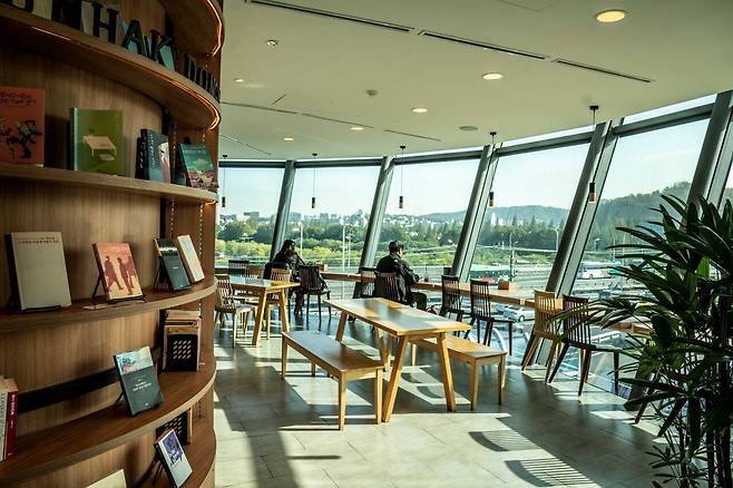 고즈넉한 공간에서 한강을 바라보며 커피를 마시고 싶은 분들은 강변 서재를 추천합니다. 국회 사랑재 옆 건물에 자리한 강변 서재는 넓은 통창을 통해 한강을 한눈에 담을 수 있어 마치 한강 위에 떠 있는 듯한 느낌을 주는 한강 카페에요.