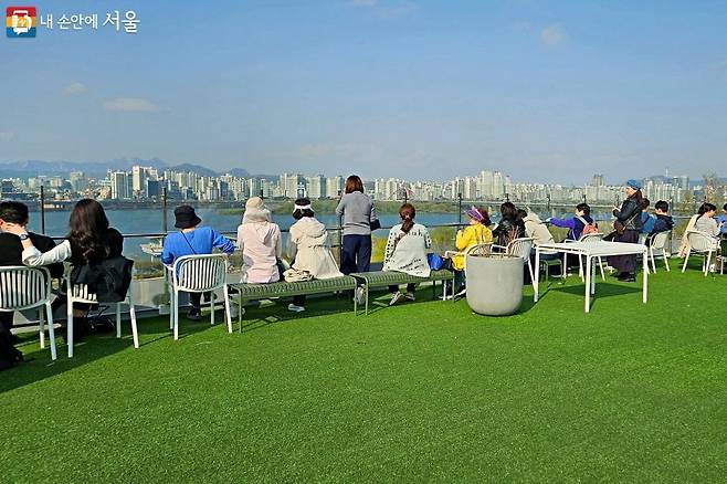 통유리창 너머로 펼쳐지는 한강 뷰는 마치 액자 속에 걸려있는 그림 같이 느껴지죠. 1층에서 커피를 주문하고, 2층, 3층, 4층으로 올라가면 각기 다른 방향의 한강과 서울 도심 풍경을 감상할 수 있어요.