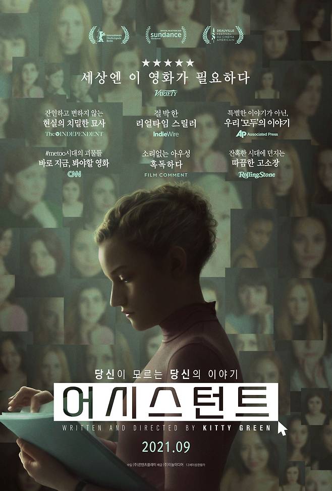 잘 알려진 영화는 아니지만, 정말 좋았다. 나의 올해의 영화 어시스턴트. 항상 꿈꾸던 영화사의 어시스턴로 취직한 주인공. 하지만 그녀가 하는 일은 하나도 특별하지 않다. 회사에 가장 먼저 출근해 시나리오를 프린트하고, 미팅이 끝난 테이블을 정리하거나 점심 심부름을 한다. 이 영화는 반복되는 일상 속 부품처럼 소모되는 주인공의 하루를 통해 한 때 세간을 떠들썩하게 했던 영화판 속 만연한 성폭력의 실상을 정물화처럼 그려낸다. 영화의 마지막 장면이 인상적이다. 늦은 시간 도무지 끝날 기미가 보이지 않는 대표와 배우 지망생의 미팅, 결국 기다리다 지쳐 사무실의 불을 끄고 퇴근하는 주인공. 사무실을 나서는 엘리베이터 안에서 같은 회사의 높은 직급의 여성 임원과 마주친다. 모든 것을 알고 있다는 듯한 여성 임원은 주인공에게 이런 말을 건넨다. “그녀는 대신 많은 것을 얻게 될 거야.” 이 말이 무엇을 의미하는지 설명하지 않아도 우리는 안다. 방관하는 사람 또한 가해자다. 만약 내가 주인공에 처한 상황이었다면, 방관자가 아닐 수 있을까? 영화 내내 카메라는 가해자인 영화사 대표 얼굴 한 번 비추지 않고, 주인공에게 직접적인 폭행이 있는 것도 아니지만, 현실적인 묘사에 보는 내내 숨이 막히고 명치가 답답하다. 오래도록 남는 여운으로 올해의 영화를 뽑는다면 단연 1등. 올해의 영화 어시스턴트다. 웨이브에 있으니까 꼭 보시길.