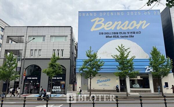 김동선 한화갤러리아 미래비전총괄(부사장)이 2년여간 심혈을 기울여 준비한 프리미엄 아이스크림 브랜드 '벤슨'이 이달 23일 서울 강남구 신사동에 1호점을 오픈한다. 지난달 말 문을 연 파이브가이즈 7호점 바로 옆건물이자 갤러리아백화점 명품관과는 도보 5분 거리다. 이에 햄버거와 디저트, 쇼핑으로 구축된 한화 유통 부문의 ‘압구정 타운화’가 본격 가동될 것이라는 전망이 나온다.