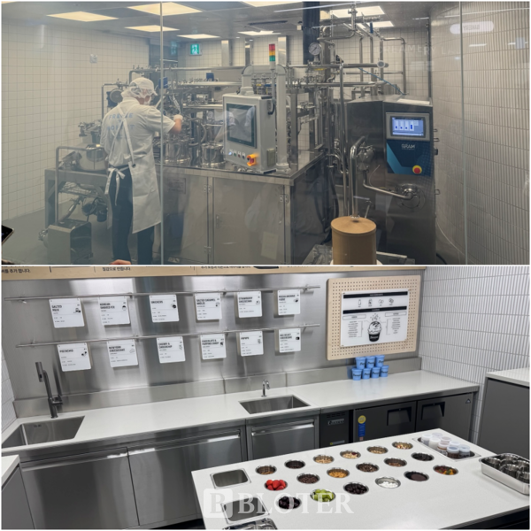 먼저 지하 1층에는 경기 포천시에 위치한 실제 벤슨 생산시설을 20분의1로 줄인 파일럿 라인이 들어섰다. 고객은 이 라인에서 생산된 믹스를 선택하고, 별도 공간인 ‘크리머리 스튜디오’에서 토핑과 소스 등을 조합할 수 있다. 재료 선택부터 포장까지 직접 참여하는 ‘커스텀 아이스크림 클래스(유료예약제)’에 참여하면 된다. 1층으로 올라오면 20가지 플레이버를 모두 시식해볼 수 있는 스쿱숍이 있다. 구매가격은 싱글컵(1스쿱, 100g) 기준 5300원, 파인트 기준 1만5300원이다. 2층 테이스팅라운지에서는 지난해 프랑스 미식 어워드 '라 리스트'에서 한국인 최초로 상을 받은 저스틴 리 셰프가 선보이는 프리미엄 디저트를 접시당 1만원 후반~2만원 초반대에 만날 수 있다.