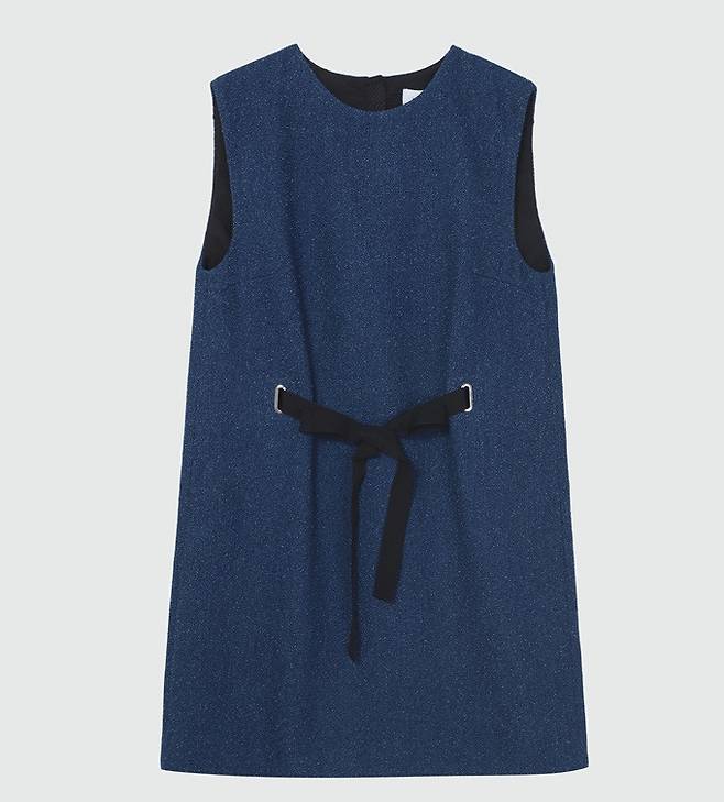 조이현이 착용한 리본 벨트 부클 트위드 원피스는 심플하면서 세련된 민소매 디자인으로 쿨하고 멋스러운 분위기를 연출한다.