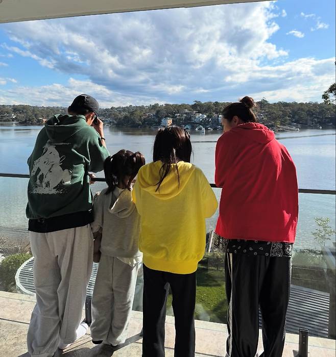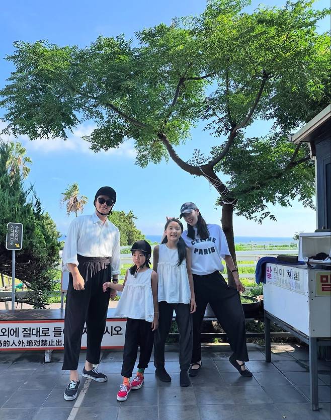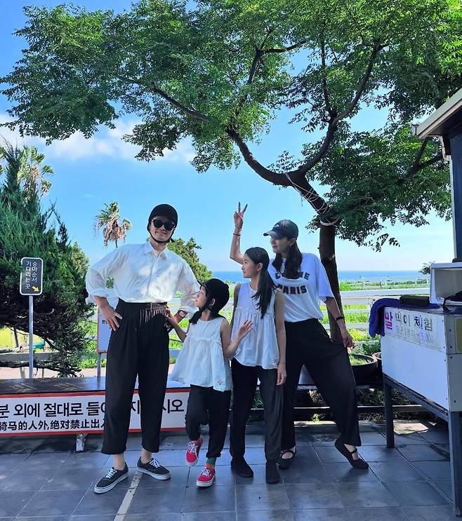 룩이었어요. 계절감에 딱 맞는 시원한 패밀리룩 덕분에 네 사람 모두 더욱 사랑스럽고 화목한