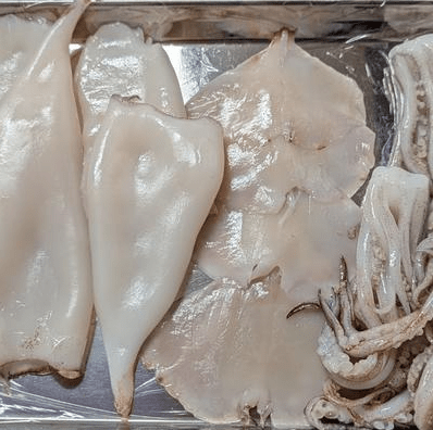오징어 특유의 비린내는 튀겼을 때도 그대로 남을 수 있으므로, 물과 약간의 식초 또는 청주에 담가 비린내를 제거해주는 과정이 필수이다. 5분 정도 담가 놓은 뒤 체에 밭쳐 물기를 충분히 제거해준다.