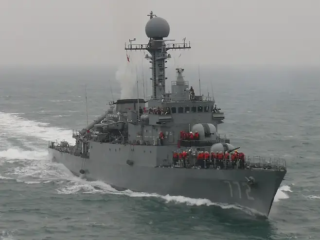 AI 기반 표적 식별로 RCS 100㎡ 스텔스함도 25km 밖에서 포착, 중국 056A의 50㎡ 반사면적을 정밀 추적했다. 76mm Oto Melara 함포와 한국산 함미사일 사격 연동으로 락온 3초 내 발사 준비 완료. "고철이 아닌 현역 최강"이라는 평가가 쏟아졌다.
