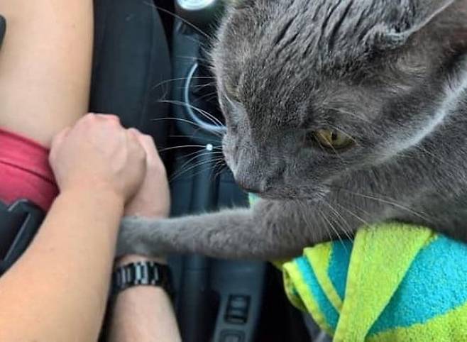 안락사 진행을 위해 병원으로 향하는 길에 고양이는 집사의 손을 향해 자기 앞발을 쭉 뻗어서 마지막 작별 인사를 나눴는데요.