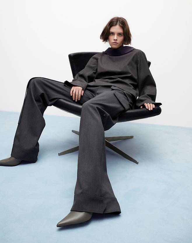 함께 매치한 여유로운 핏의 슬랙스는