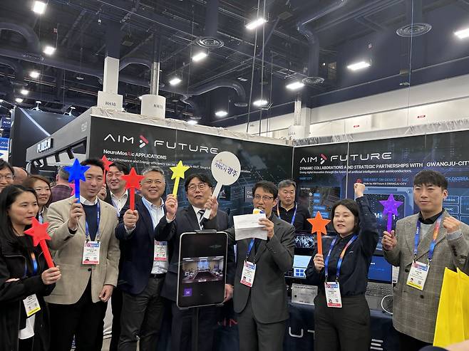 광주광역시(시장 강기정)와 ㈜에임퓨처는 9일 오전 7시(현지시간 8일 오후 2시) 미국 라스베이거스에서 열린 ‘CES 2025’ 에임퓨처 전시부스에서 광주형 AI반도체 ‘AiM-GJ-1(에임-지제이-원)’ 시제품 데모 행사를 온·오프라인으로 동시 진행했다.