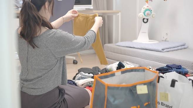 비움 쇼핑백에는 더 이상 쓸모없는 옷가지들을 분류했어요.