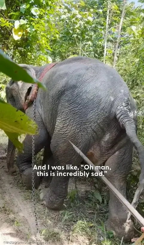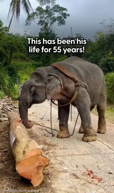 태국에 사는 수컷 코끼리 '타이니(Tiny)'는 55년 동안 몸에 사슬을 두른 채 숲속에서 무거운 통나무를 옮기는 일을 해왔다.