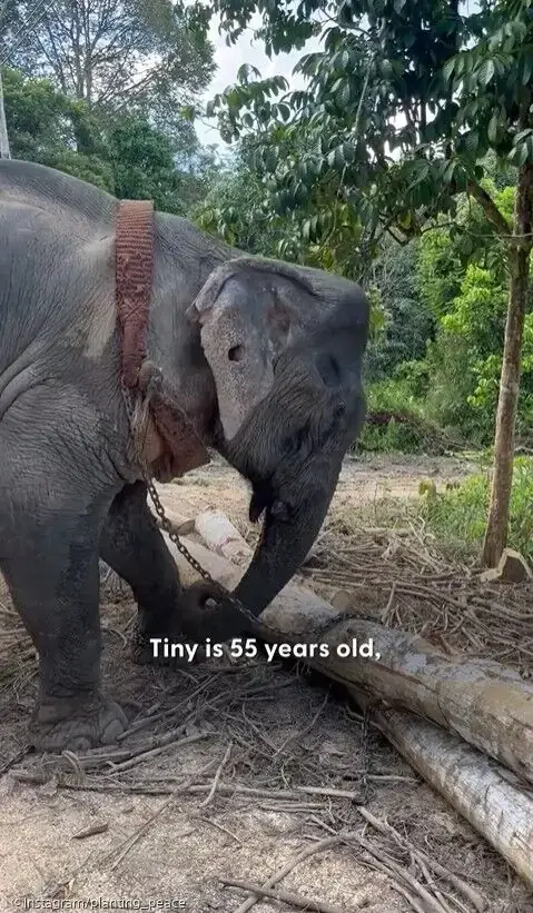 태국에 사는 수컷 코끼리 '타이니(Tiny)'는 55년 동안 몸에 사슬을 두른 채 숲속에서 무거운 통나무를 옮기는 일을 해왔다.