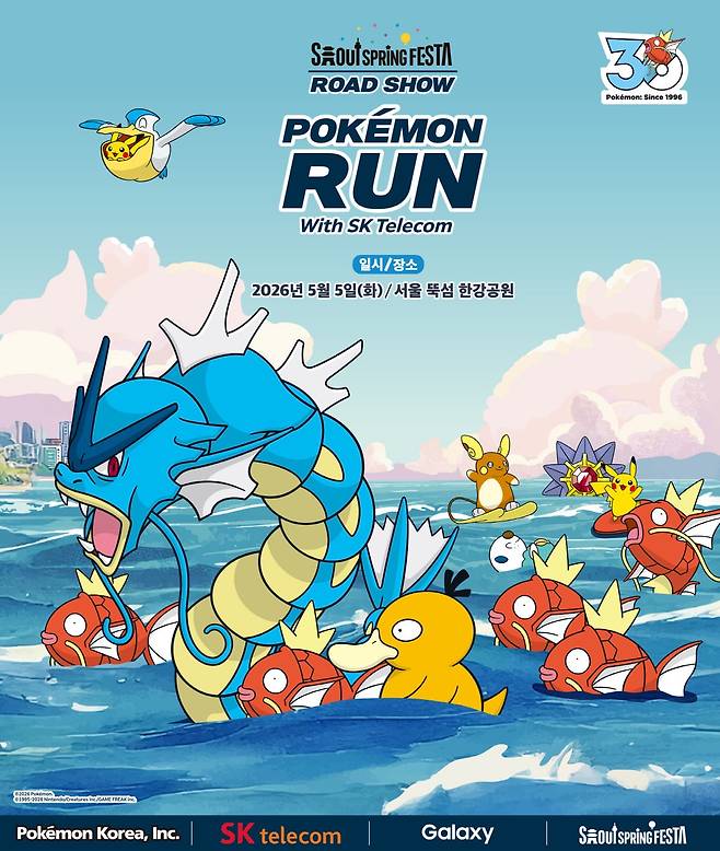 5월 5일 어린이날에는 서울 한강 뚝섬공원 일대에서 '포켓몬 런 2026'이 진행된다. 이 행사는 잉어킹 서사를 콘셉트로 펼쳐지며, 약 5,000명의 참가자가 한강을 달릴 예정이다.