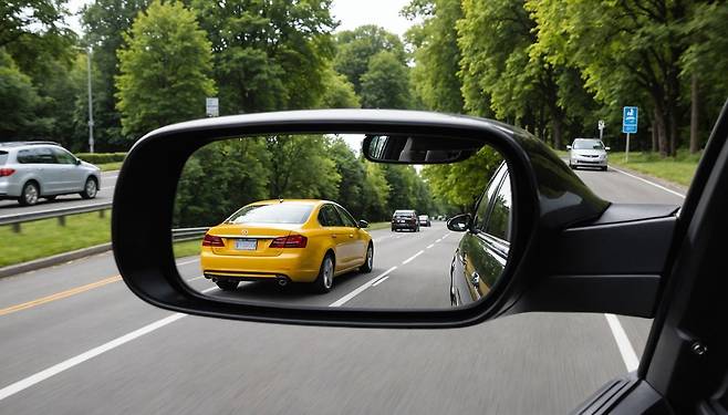 사이드미러를 제대로 맞추면 미러 안에 내 차량 옆이 아주 살짝 보이면서 도로, 옆 차선, 뒷 차 두 대까지 시야에 들어온다. 미러 각도를 너무 안쪽으로 당기면 내 차 자체만 크게 보이고, 사각지대가 커지니 절대 금물이다. 제대로 세팅되면 차선 변경, 주차, 추월 등 전방위 안전운전에 결정적 이점이 된다.