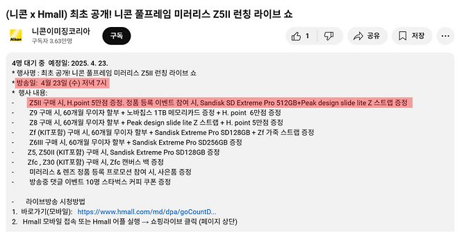 H몰 제휴로 Z5II 홈쇼핑에서 구입 가능한 거 같아요