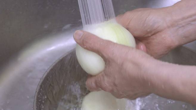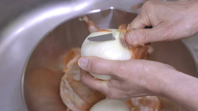 먼저 준비한 양파 껌질을 제거한 후 물로 깨끗이 씻어 주세요.